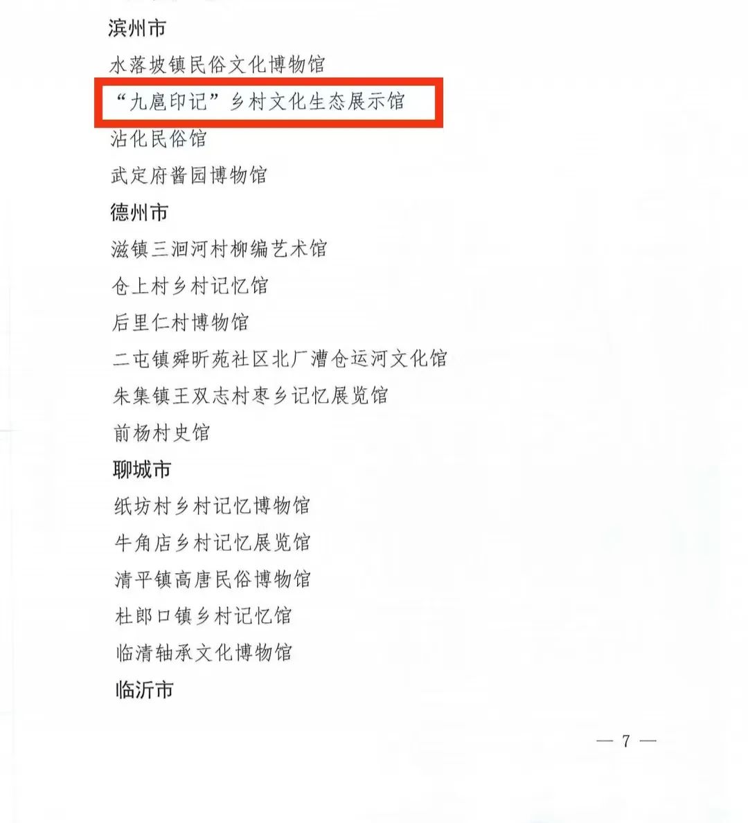 近日,山東省文化和旅游廳公布首批山東省鄉(xiāng)村(社區(qū))博物館名單,鄒平市“九扈印記”鄉(xiāng)村文化生態(tài)展示館入選。