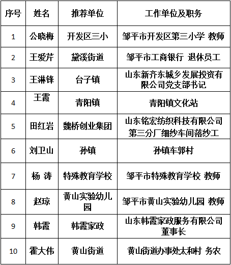 第五屆鄒平市“十大孝子”候選人名單